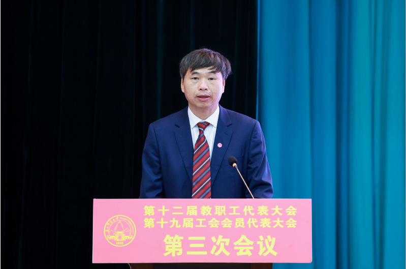 4月2日,学校第十二届教职工代表大会暨第十九届工会会员代表大会第三次会议在育才校区举行。校党委书记贺祖斌出席会议并讲话,校党委副书记、校长孙杰远向大会作工作报告。