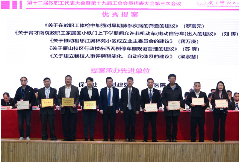 校党委书记贺祖斌、校长孙杰远为第十二届二次教代会“优秀提案”和“提案承办先进单位”颁奖