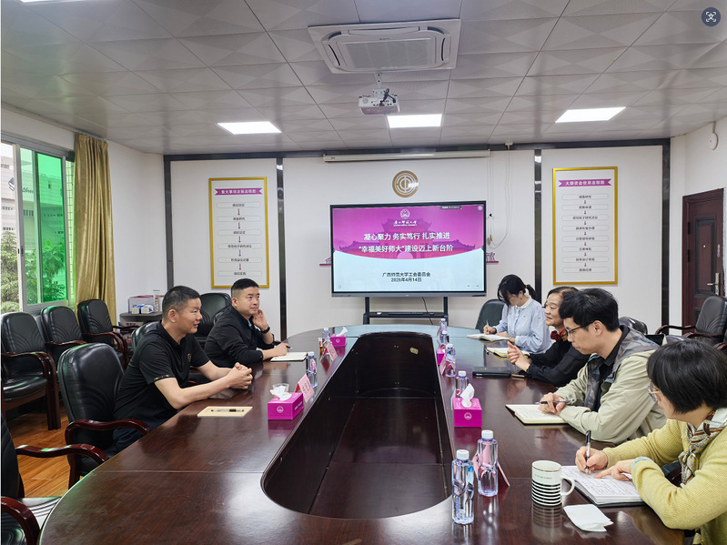 4月14日上午,在育才校区教工活动中心301会议室,桂林市总工会党组成员、副主席陈国书,桂林市教育工会负责人莅临我校工会调研指导工作。校工会常务副主席刘月娥,部门负责人陪同调研。
